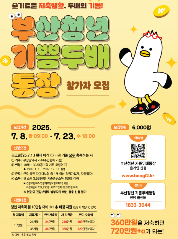 바로 2025년 부산청년 두배기쁨통장의 신청이 시작되었다는 소식인데요.