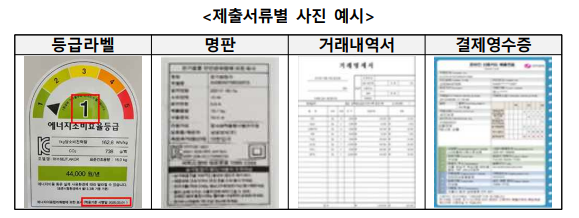 2. 구매 영수증, 거래내역서, 등급라벨 및 명판 사진 등 서류 제출 가능