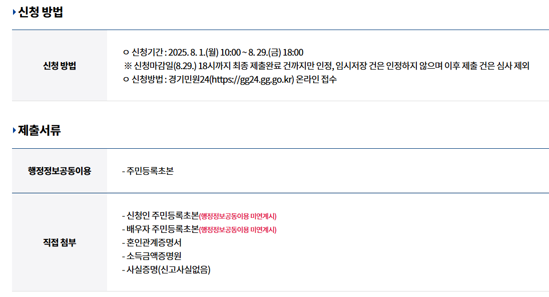 (온라인 접수 ONLY, 경기민원24 홈페이지에서 신청 가능) - 지급 시기: