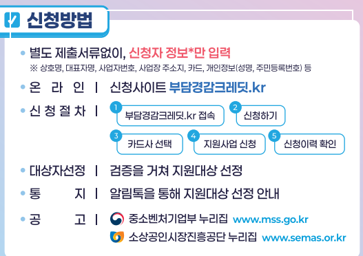 오늘은 「소상공인 부담경감 크레딧 지원사업」 에 대해 살펴보았습니다.