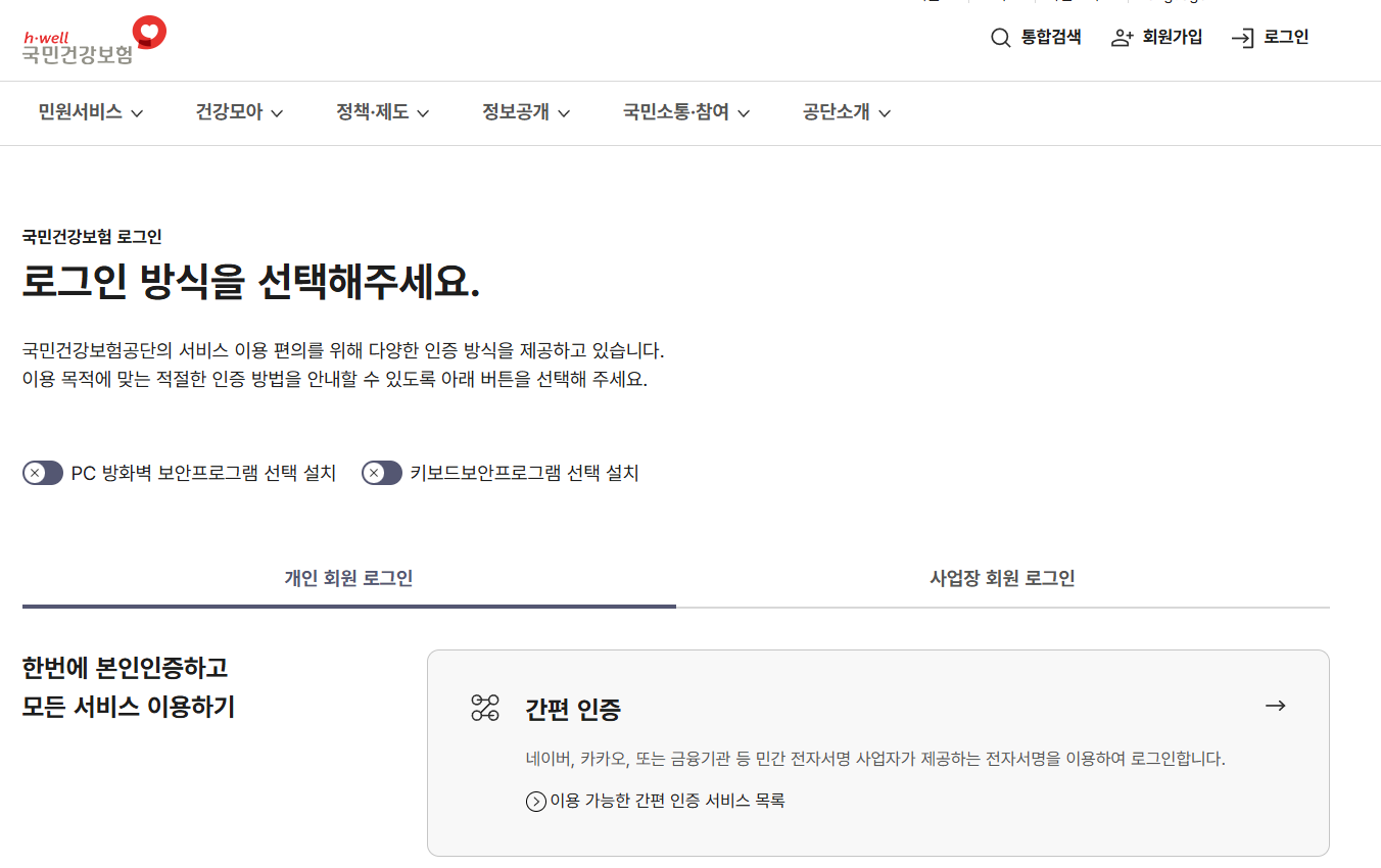 👉 따라서 가장 간단한 방법은 건강공단 홈페이지